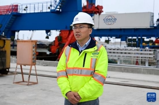 6月21日,在秘魯錢凱港,中遠海運港口秘魯錢凱公司常務(wù)副總經(jīng)理何波接受新華社記者采訪。 新華社記者 李木子 攝