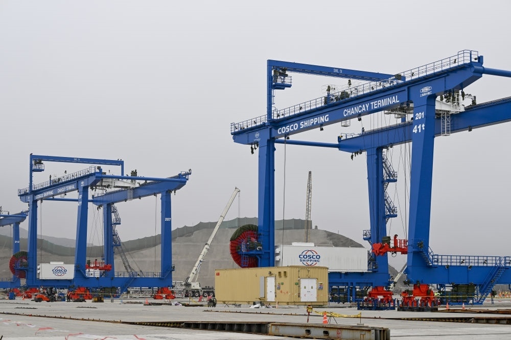 2024年11月9日,集裝箱船駛入秘魯錢凱港自動化碼頭。(上海振華重工供圖)