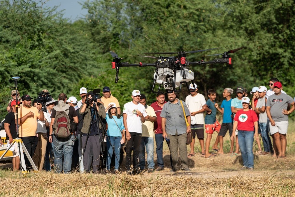 2024年2月2日,中巴農業(yè)機械化合作示范項目啟動儀式在巴西阿波迪舉行,第一批來自中國7家農機企業(yè)共31臺(件)設備正式交付給巴西農村勞動者組織。這是人們觀看一款中國生產的農用無人機。