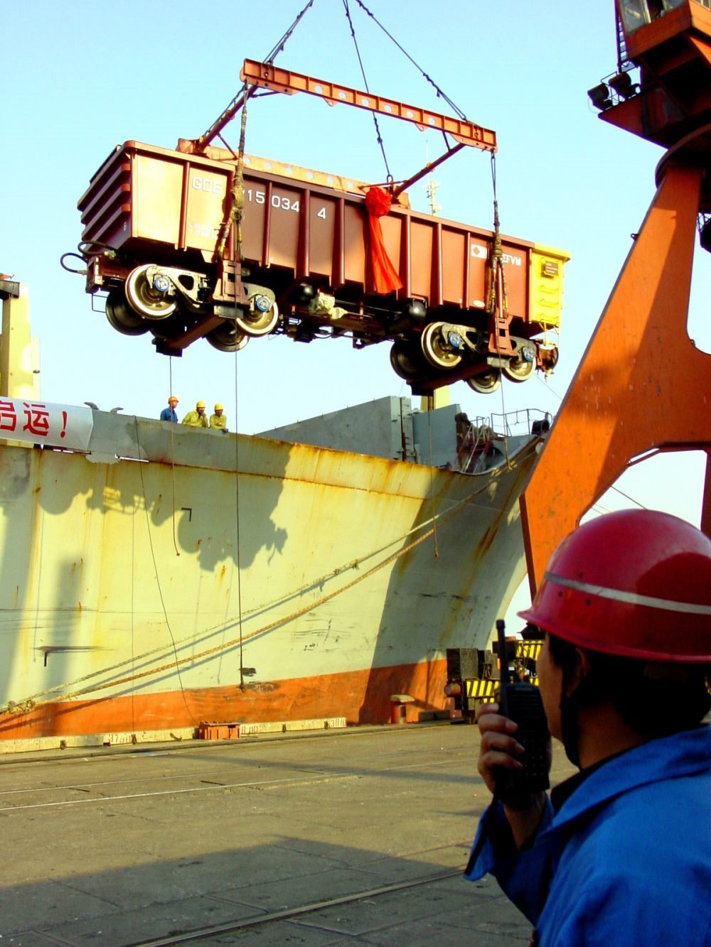 2003年10月23日,中國向巴西出口的首批鐵路貨車從上海張華浜港啟運。這是中國首次向南美出口鐵路貨車。
