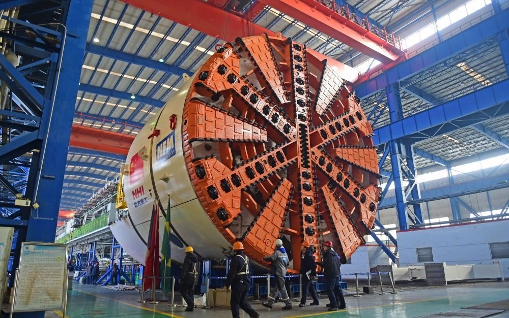 這是在遼寧沈陽北方重工集團拍攝的即將出口到巴西圣保羅的盾構機(2016年1月28日攝)。