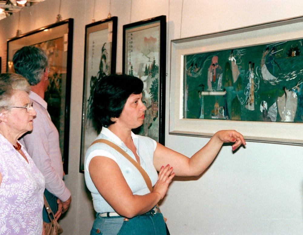 1983年5月24日至7月31日,中國經濟貿易展覽會在巴西圣保羅和里約熱內盧舉辦。這是巴西觀眾在展覽會上欣賞貝雕羽毛畫。