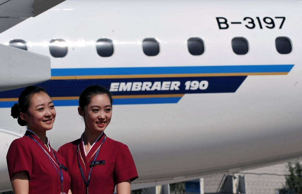 2011年8月16日,巴西航空工業(yè)公司生產的EMB190噴氣式飛機抵達烏魯木齊國際機場,正式加入南航新疆分公司機隊。這是南航空乘人員在飛機前合影。