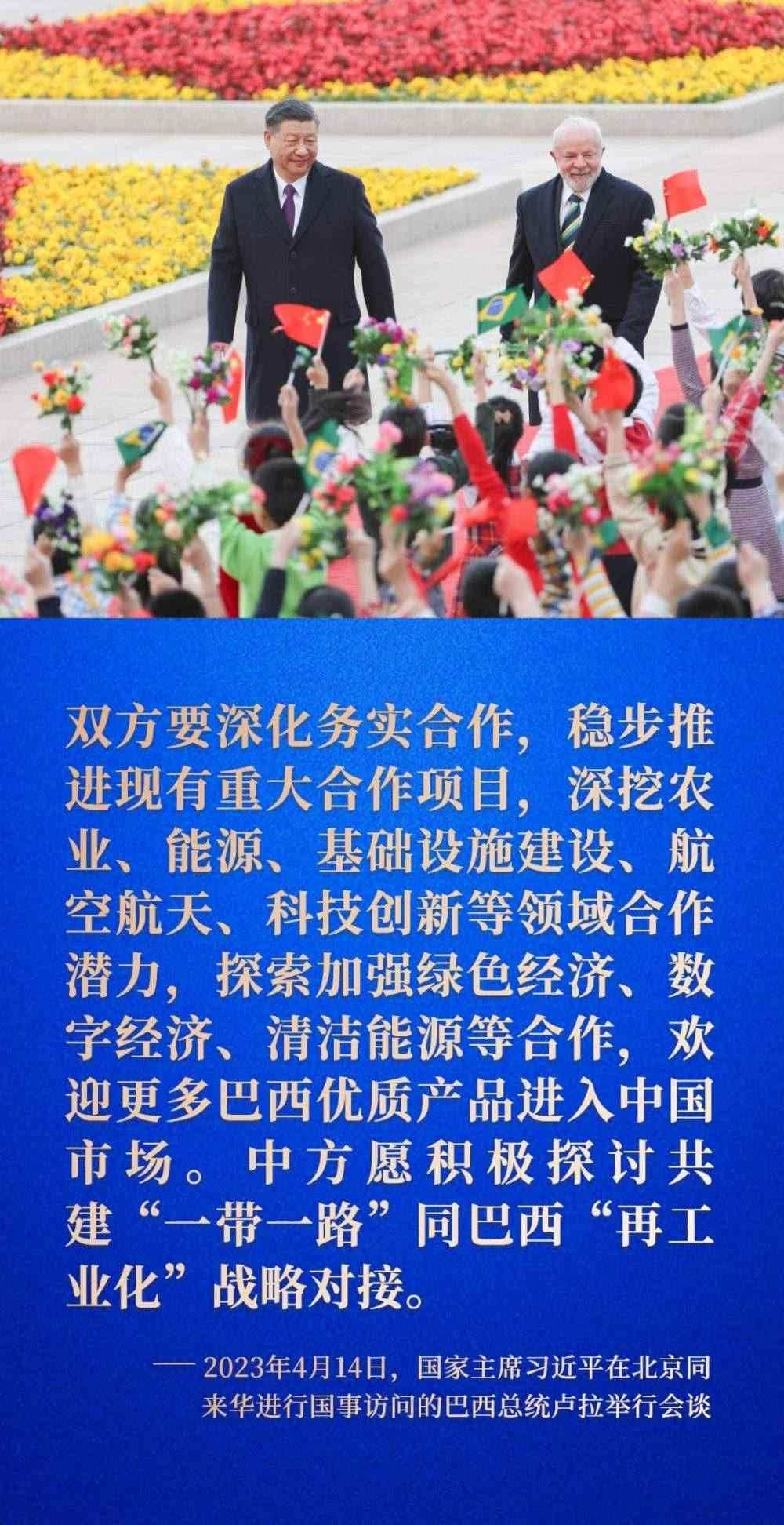 中國和巴西同為發(fā)展中大國和重要新興市場國家,互為全面戰(zhàn)略伙伴。習近平主席用“發(fā)展中大國關系典范”描述中巴關系,并多次談到兩國要深化務實合作,促進共同發(fā)展。