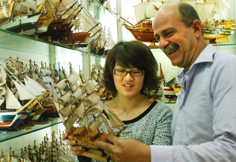 2009年3月31日,一名巴西客商在浙江義烏國際商貿城采購工藝帆船。