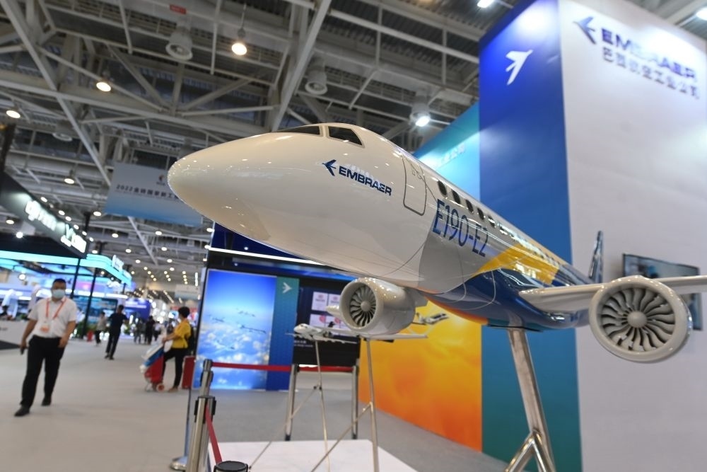 2022年9月8日,第二十二屆中國國際投資貿易洽談會在福建廈門開幕。巴西航空工業(yè)公司在展位展出了E190-E2飛機模型。