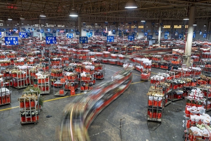 2023年1月31日,臺車在昆明國際花卉拍賣交易中心運輸鮮花。新華社記者 陳欣波 攝