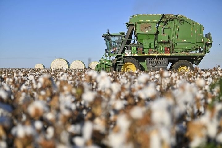 在全國最大產(chǎn)棉區(qū)新疆,農(nóng)民建起大面積高標準農(nóng)田。隨著植保無人機、大型采棉機、殘膜回收機等廣泛應(yīng)用,新疆棉花耕種基本實現(xiàn)全程機械化,棉農(nóng)甚至能幫助國際采棉機巨頭改進機器工藝。
