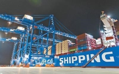 軟聯(lián)通共建“一帶一路”國(guó)家在工作制度對(duì)接、技術(shù)標(biāo)準(zhǔn)協(xié)調(diào)、檢驗(yàn)結(jié)果互認(rèn)等方面強(qiáng)化合作、統(tǒng)一標(biāo)準(zhǔn),貿(mào)易自由化便利化水平不斷提升。上海洋山港海關(guān)對(duì)接共建國(guó)家進(jìn)出口貨物相關(guān)標(biāo)準(zhǔn),推動(dòng)通關(guān)一體化方式申報(bào),提升通關(guān)效率。圖為無(wú)人駕駛的全自動(dòng)導(dǎo)引車(chē)在洋山港穿梭往來(lái),搬運(yùn)集裝箱。王 初攝(影像中國(guó))