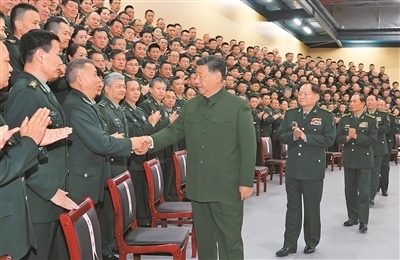 十二月四日,中共中央總書記、國(guó)家主席、中央軍委主席習(xí)近平視察信息支援部隊(duì),代表黨中央和中央軍委,對(duì)信息支援部隊(duì)第一次黨代表大會(huì)的召開表示熱烈祝賀,向信息支援部隊(duì)全體官兵致以誠(chéng)摯問候。這是習(xí)近平同代表們親切握手。新華社記者 李 剛攝