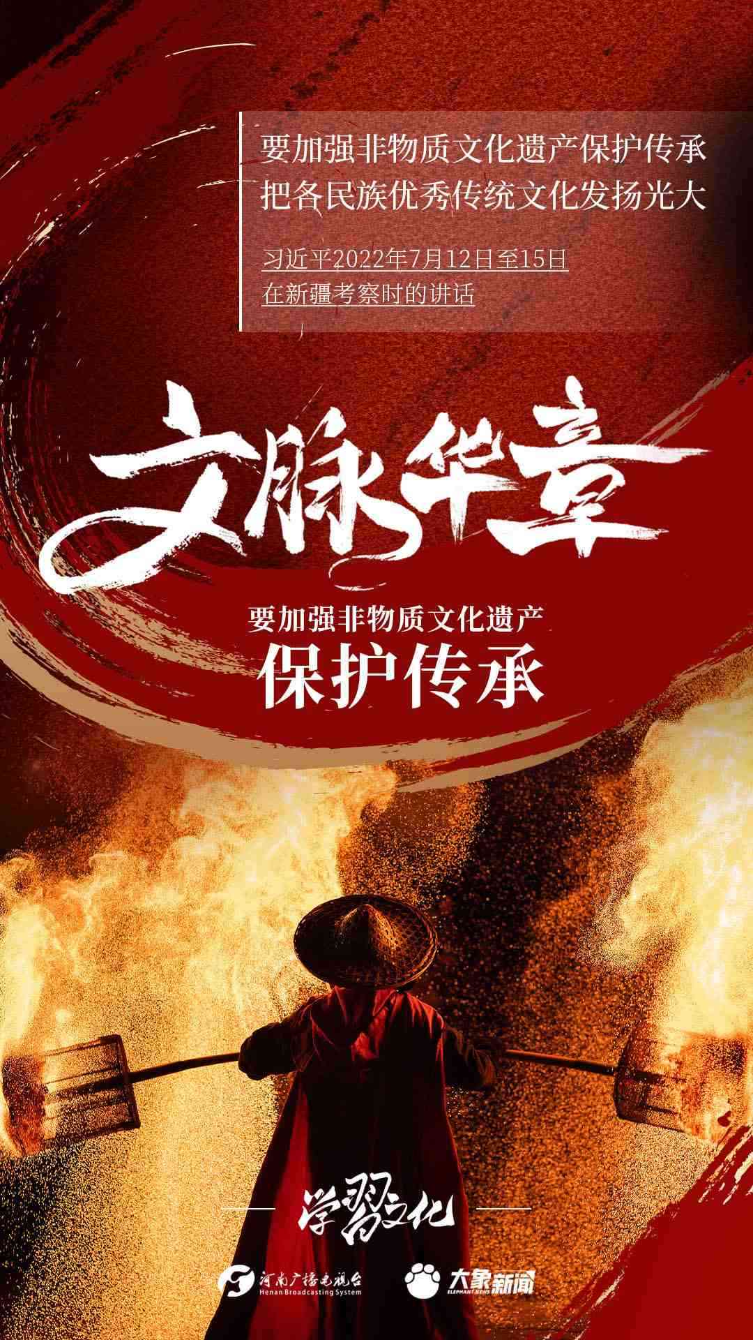 非物質(zhì)文化遺產(chǎn)是中華優(yōu)秀傳統(tǒng)文化的重要組成部分,是中華文明綿延傳承的生動見證,是我國各族人民寶貴的精神財富。習近平總書記十分關(guān)心非物質(zhì)文化遺產(chǎn)的保護傳承,多次強調(diào)“要扎實做好非物質(zhì)文化遺產(chǎn)的系統(tǒng)性保護”“培養(yǎng)好傳承人”等。大象新聞為您梳理,邀您一起學(xué)習、領(lǐng)悟、踐行。