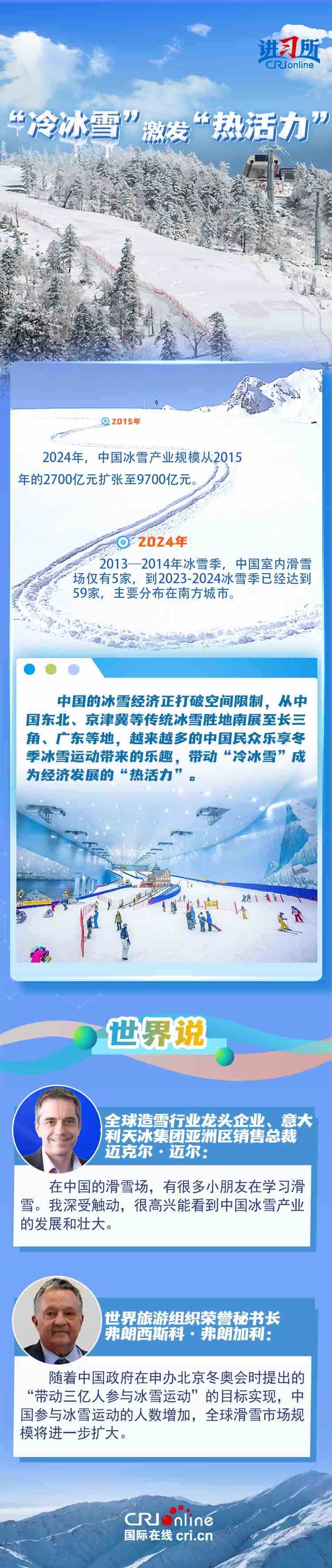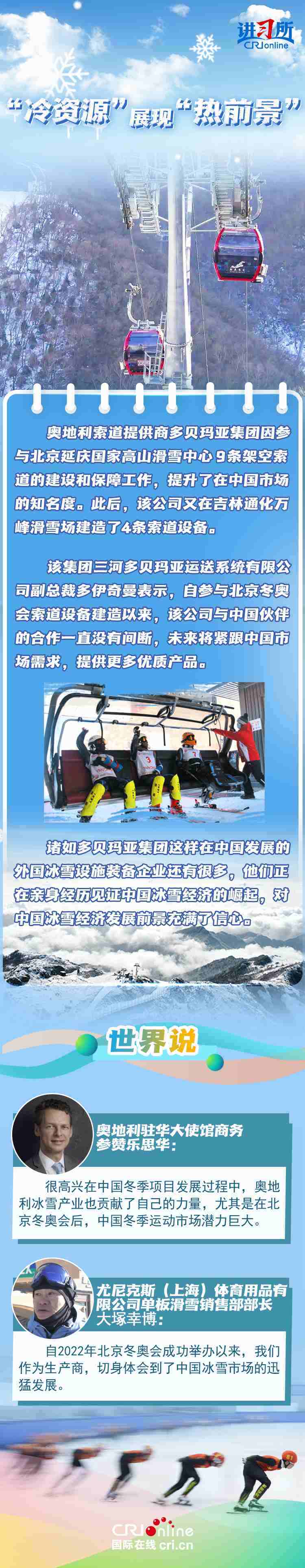 去年年底,中國國務(wù)院辦公廳印發(fā)《關(guān)于以冰雪運(yùn)動(dòng)高質(zhì)量發(fā)展激發(fā)冰雪經(jīng)濟(jì)活力的若干意見》,旨在鞏固和擴(kuò)大“帶動(dòng)三億人參與冰雪運(yùn)動(dòng)”成果,以冰雪運(yùn)動(dòng)為引領(lǐng),帶動(dòng)冰雪文化、冰雪裝備、冰雪旅游全產(chǎn)業(yè)鏈發(fā)展,推動(dòng)冰雪經(jīng)濟(jì)成為新增長點(diǎn)。不少國際組織、企業(yè)和媒體認(rèn)為,中國冰雪經(jīng)濟(jì)的蓬勃發(fā)展,不僅帶來新合作機(jī)遇,更為全球冰雪市場貢獻(xiàn)力量。