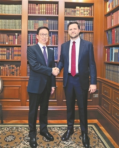 會見萬斯時,韓正首先轉(zhuǎn)達(dá)習(xí)近平主席對特朗普總統(tǒng)的問候,并祝賀萬斯當(dāng)選。韓正表示,近日習(xí)近平主席同特朗普總統(tǒng)進(jìn)行了重要通話,就下階段中美關(guān)系發(fā)展達(dá)成許多重要共識。中方愿同美方一道,堅持元首外交的戰(zhàn)略引領(lǐng),落實好習(xí)近平主席同特朗普總統(tǒng)達(dá)成的重要共識,推動中美關(guān)系穩(wěn)定、健康、可持續(xù)發(fā)展。