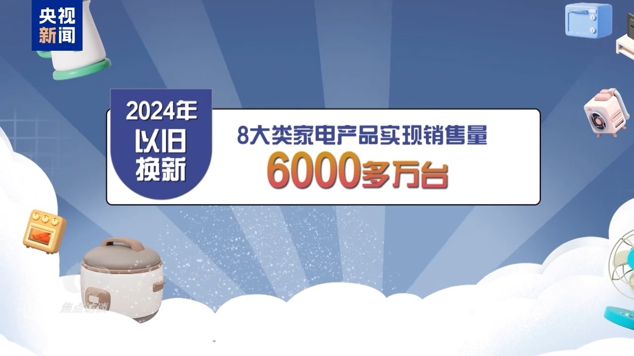 好政策帶來(lái)了好成效。以家電市場(chǎng)為例,2024年,中央加力支持以舊換新8大類(lèi)家電產(chǎn)品實(shí)現(xiàn)銷(xiāo)售量6000多萬(wàn)臺(tái),直接拉動(dòng)消費(fèi)超2600億元。