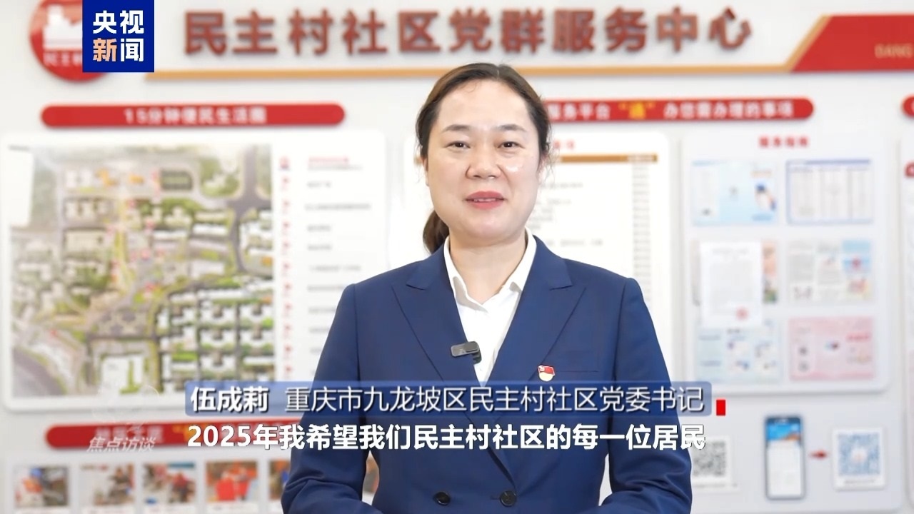 重慶市九龍坡區(qū)民主村社區(qū)黨委書記 伍成莉:2025年我希望我們民主村社區(qū)的每一位居民心往一處想,勁兒往一處使,把我們的社區(qū)建設得更加美好。