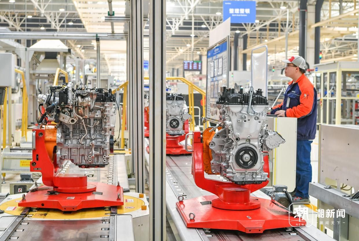 義烏吉利發(fā)動機工廠的生產(chǎn)車間內(nèi),技術(shù)工人在智能化裝配流水線上趕制油電混動汽車發(fā)動機的生產(chǎn)訂單。記者 金思成 通訊員 時寬兵 攝