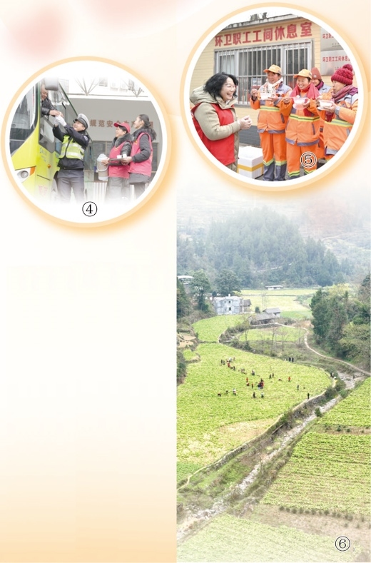 圖④:湖南懷化通道侗族自治縣,志愿者和交警為公交司機送上熱飲。