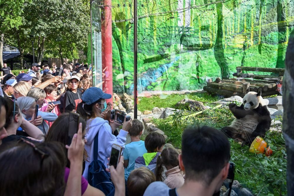 2024年7月31日,觀眾在俄羅斯莫斯科動(dòng)物園拍攝大熊貓“如意”。當(dāng)日,莫斯科動(dòng)物園為來(lái)自中國(guó)的大熊貓“如意”慶祝生日。雄性大熊貓“如意”2016年7月31日出生于中國(guó)四川雅安碧峰峽基地,它和大熊貓“丁丁”于2019年4月29日抵達(dá)莫斯科,開啟為期15年的旅居生活。