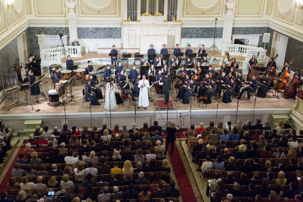 2019年11月13日,在俄羅斯圣彼得堡卡貝拉音樂(lè)廳,上海民族樂(lè)團(tuán)與安德烈耶夫國(guó)立模范民族樂(lè)團(tuán)的藝術(shù)家共同為觀眾獻(xiàn)上了一場(chǎng)名為《海上生民樂(lè)·和平頌》的精彩音樂(lè)會(huì),開啟了上海民族樂(lè)團(tuán)2019俄羅斯巡演之旅。