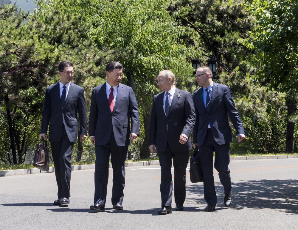 2017年5月14日,國(guó)家主席習(xí)近平在北京釣魚臺(tái)國(guó)賓館會(huì)見來(lái)華出席“一帶一路”國(guó)際合作高峰論壇的俄羅斯總統(tǒng)普京。會(huì)見后,習(xí)近平同普京在釣魚臺(tái)國(guó)賓館散步。