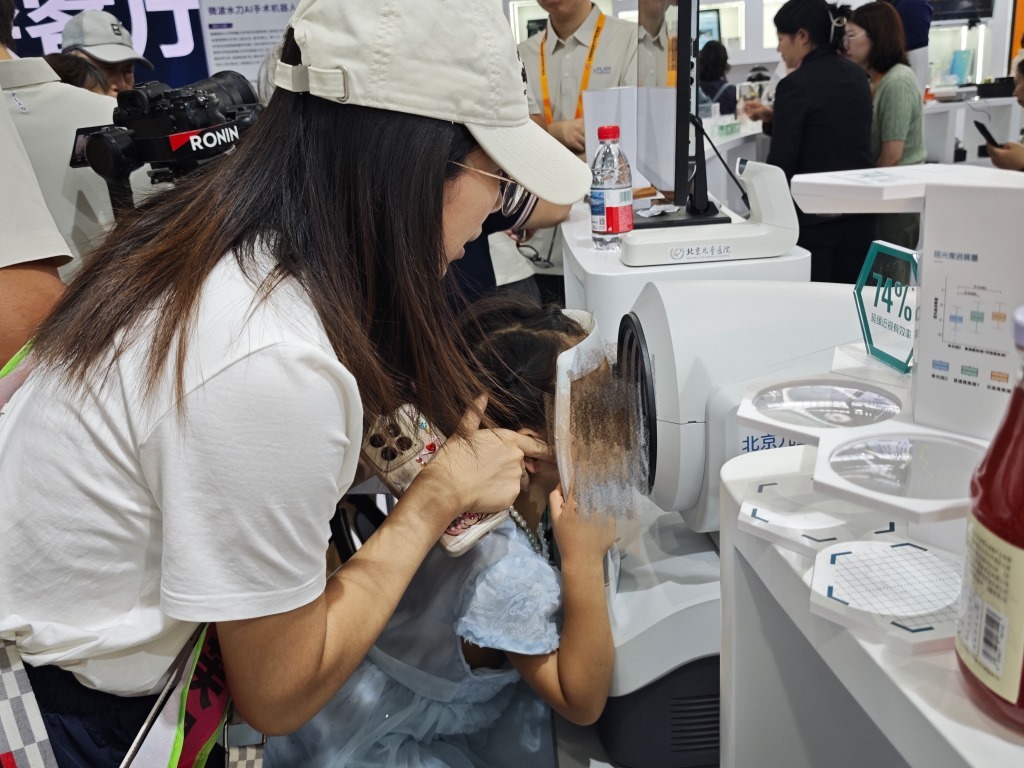 AI兒科醫(yī)生、5G遠(yuǎn)程手術(shù)機(jī)器人、智能眼底照相機(jī)、腦機(jī)接口……走進(jìn)位于北京首鋼園區(qū)2號(hào)館的2025年服貿(mào)會(huì)健康衛(wèi)生服務(wù)專題展,來自醫(yī)工融合的中國數(shù)智醫(yī)療產(chǎn)品,讓人更加熱切期盼“未來醫(yī)院”。