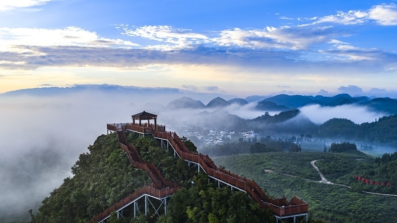 8月25日在云南西疇國(guó)家石漠公園拍攝的初秋晨景(無人機(jī)照片) 。