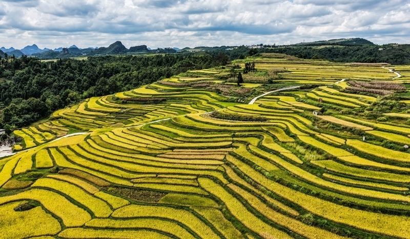 長順縣長寨街道中塘村的梯田風(fēng)光(9月17日攝,無人機照片)。