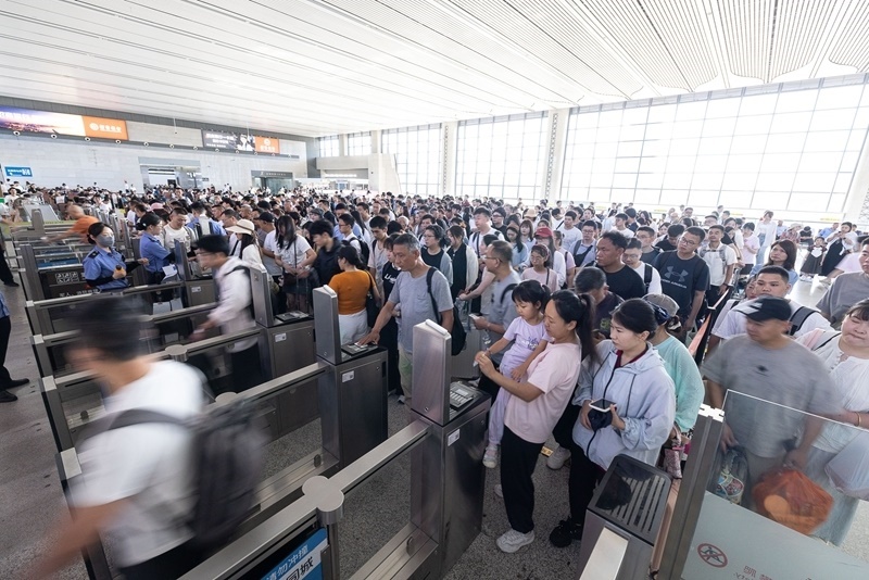 7月1日,旅客在浙江湖州站依次檢票進(jìn)站。