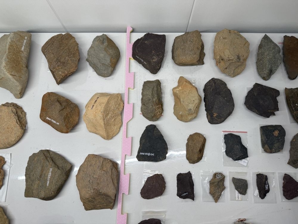 圖為南或河遺址出土的部分石制品。新華社記者徐壯 攝