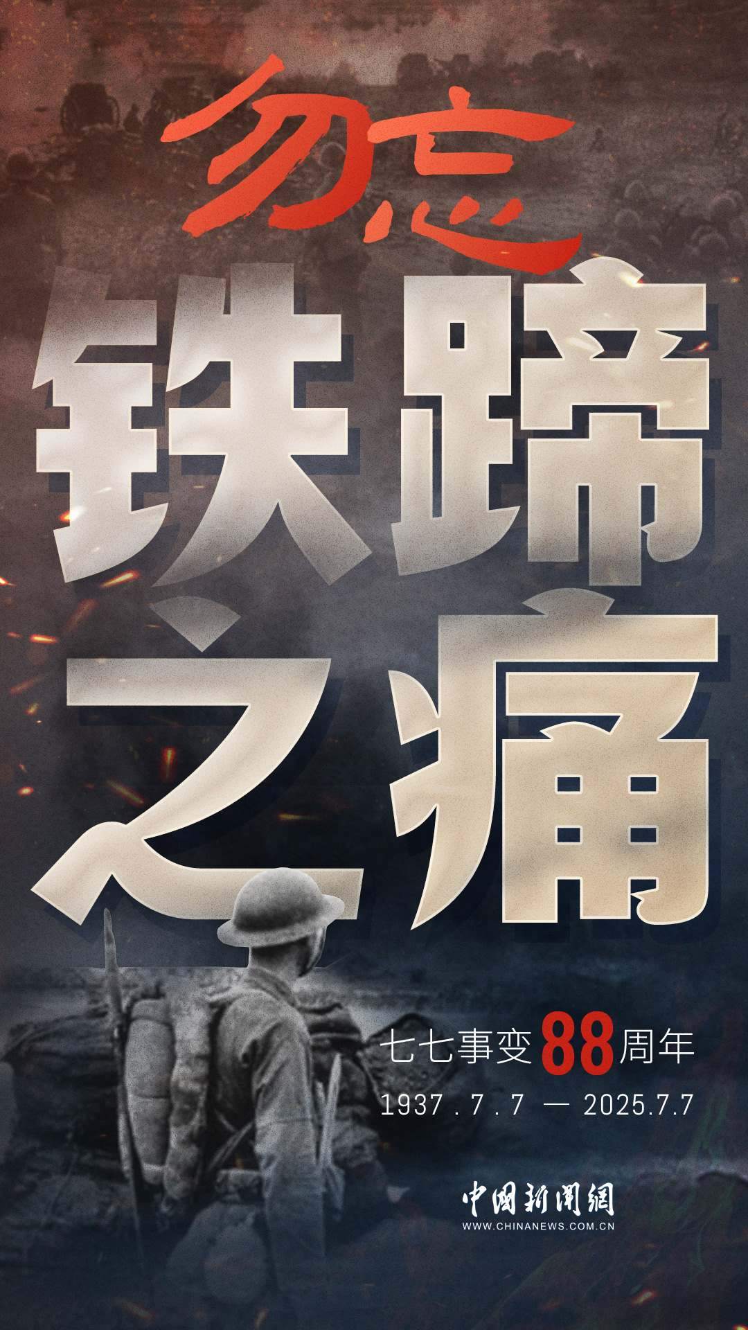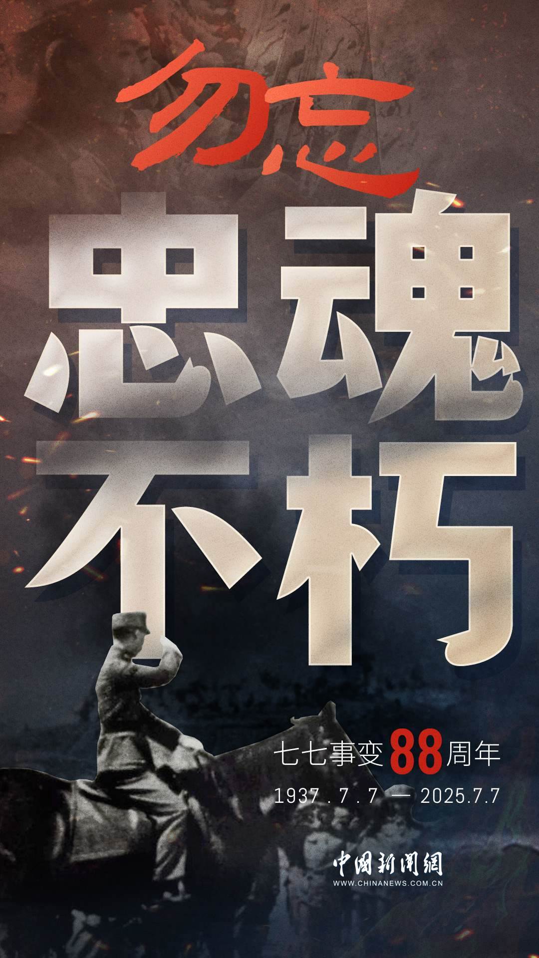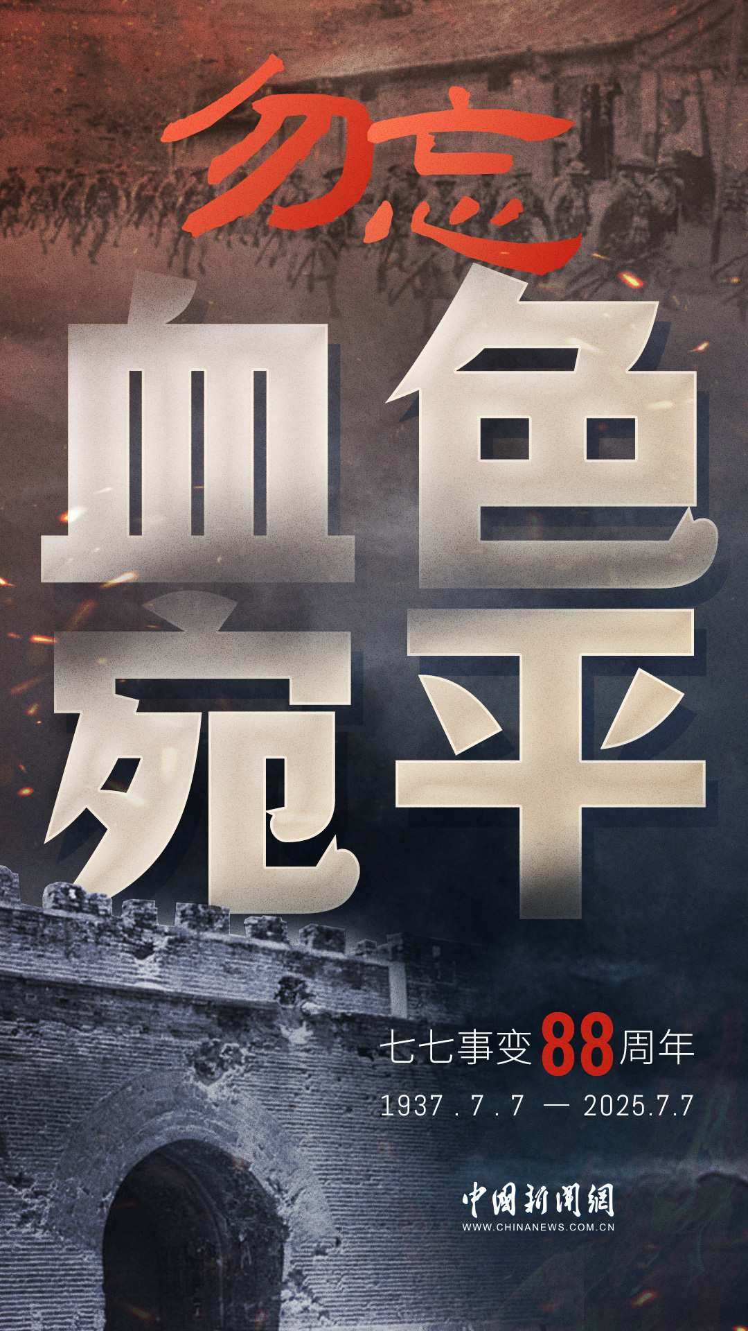 1937年7月7日,盧溝橋的槍聲撕裂長夜,中華兒女赴湯蹈火,以血肉之軀筑起御敵長城。88載歲月流轉(zhuǎn),硝煙雖散,彈痕猶在,那段浸透血淚的歷史,是刻在民族記憶里永不褪色的烙印。今日山河錦繡,國泰民安,正是先烈用生命換來的盛世。七七事變88周年,致敬英烈,銘記國殤,吾輩自強,護山河無恙!