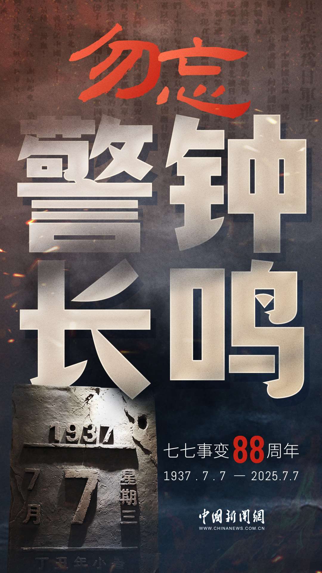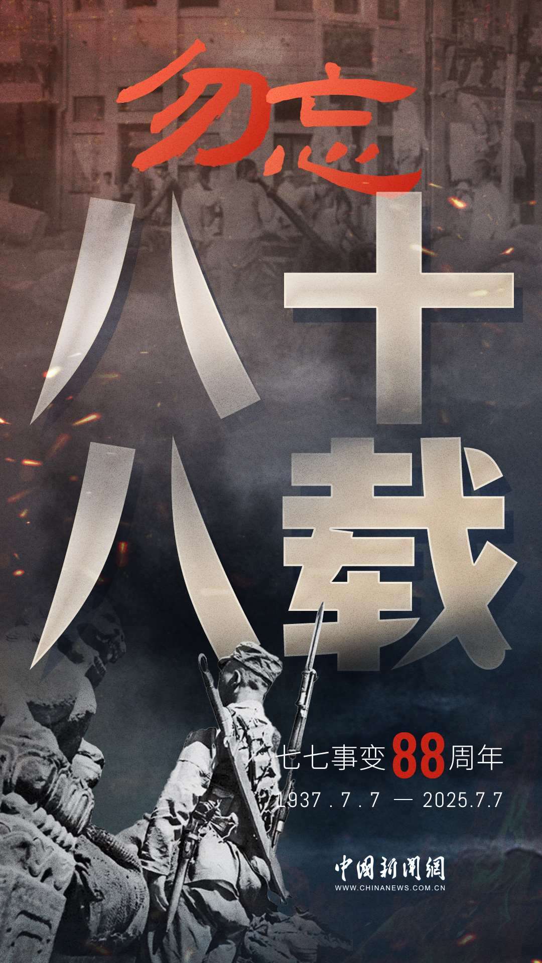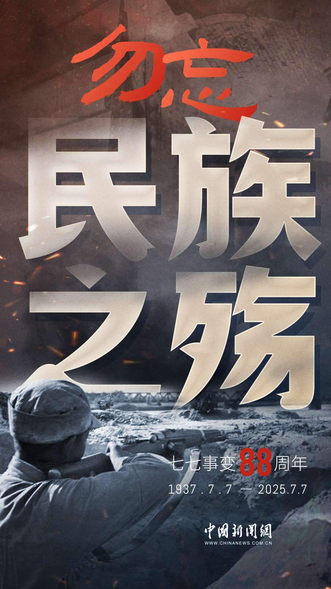 1937年7月7日,盧溝橋的槍聲撕裂長夜,中華兒女赴湯蹈火,以血肉之軀筑起御敵長城。88載歲月流轉(zhuǎn),硝煙雖散,彈痕猶在,那段浸透血淚的歷史,是刻在民族記憶里永不褪色的烙印。今日山河錦繡,國泰民安,正是先烈用生命換來的盛世。七七事變88周年,致敬英烈,銘記國殤,吾輩自強,護山河無恙!