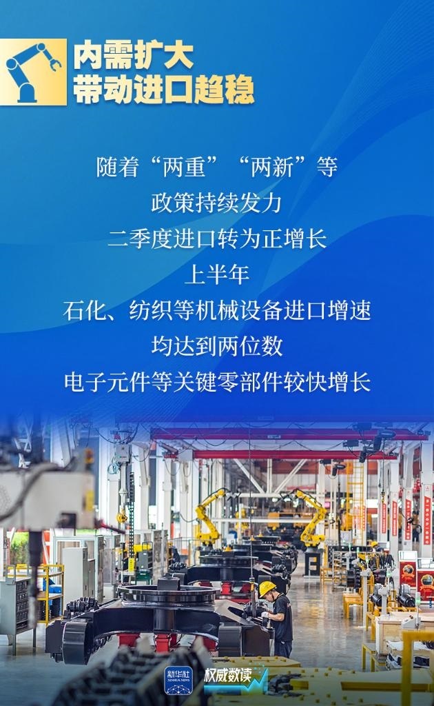 今年上半年,我國外貿(mào)在復(fù)雜環(huán)境下頂住壓力、保持動力、展現(xiàn)活力,規(guī)模穩(wěn)中有增、質(zhì)量優(yōu)中有升,成績實屬不易。跟隨這組海報,一起領(lǐng)略上半年我國外貿(mào)的這“三力”吧。