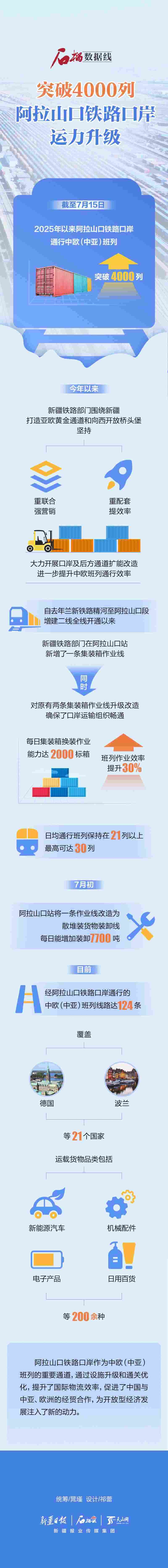 截至7月15日,2025年以來(lái)阿拉山口鐵路口岸通行中歐(中亞)班列突破4000列。