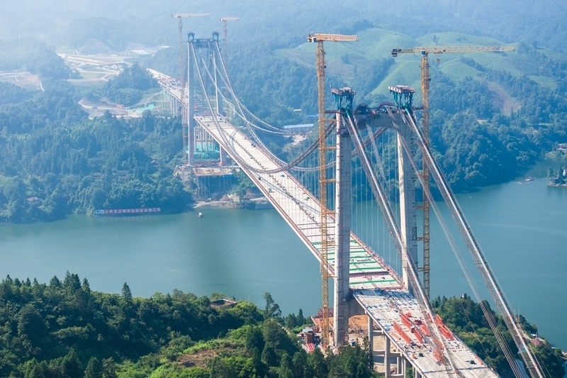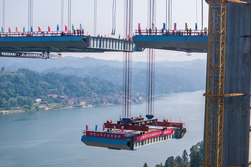 當(dāng)日,隨著最后一段200余噸重的鋼混結(jié)合梁被緩緩提升,由湖南路橋建設(shè)集團(tuán)承建的張官高速控制性工程洞庭溪沅水特大橋主橋順利合龍,為2026年全線通車奠定了堅(jiān)實(shí)基礎(chǔ)。據(jù)了解,洞庭溪沅水特大橋位于湖南懷化市沅陵縣境內(nèi),全長(zhǎng)1707米,主橋長(zhǎng)800米,為雙塔單跨懸索橋。