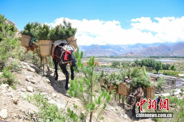 拉薩河流域造林隊(duì)員運(yùn)送樟子松樹(shù)苗。(資料圖) 中新社記者 貢嘎來(lái)松 攝