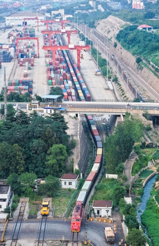 8月29日,在位于江蘇連云港市的中哈(連云港)物流合作基地,滿載50個集裝箱的光伏專列發(fā)車,這是中哈(連云港)物流合作基地開行的首列光伏專列。該趟列車抵達喀什北站后,貨物再通過汽車運抵烏茲別克斯坦,與傳統(tǒng)的全鐵路運輸相比,這種鐵公聯(lián)運方式可有效縮短運輸距離,并發(fā)揮鐵路運輸?shù)拈L距離、大運量和公路運輸?shù)撵`活性特點。