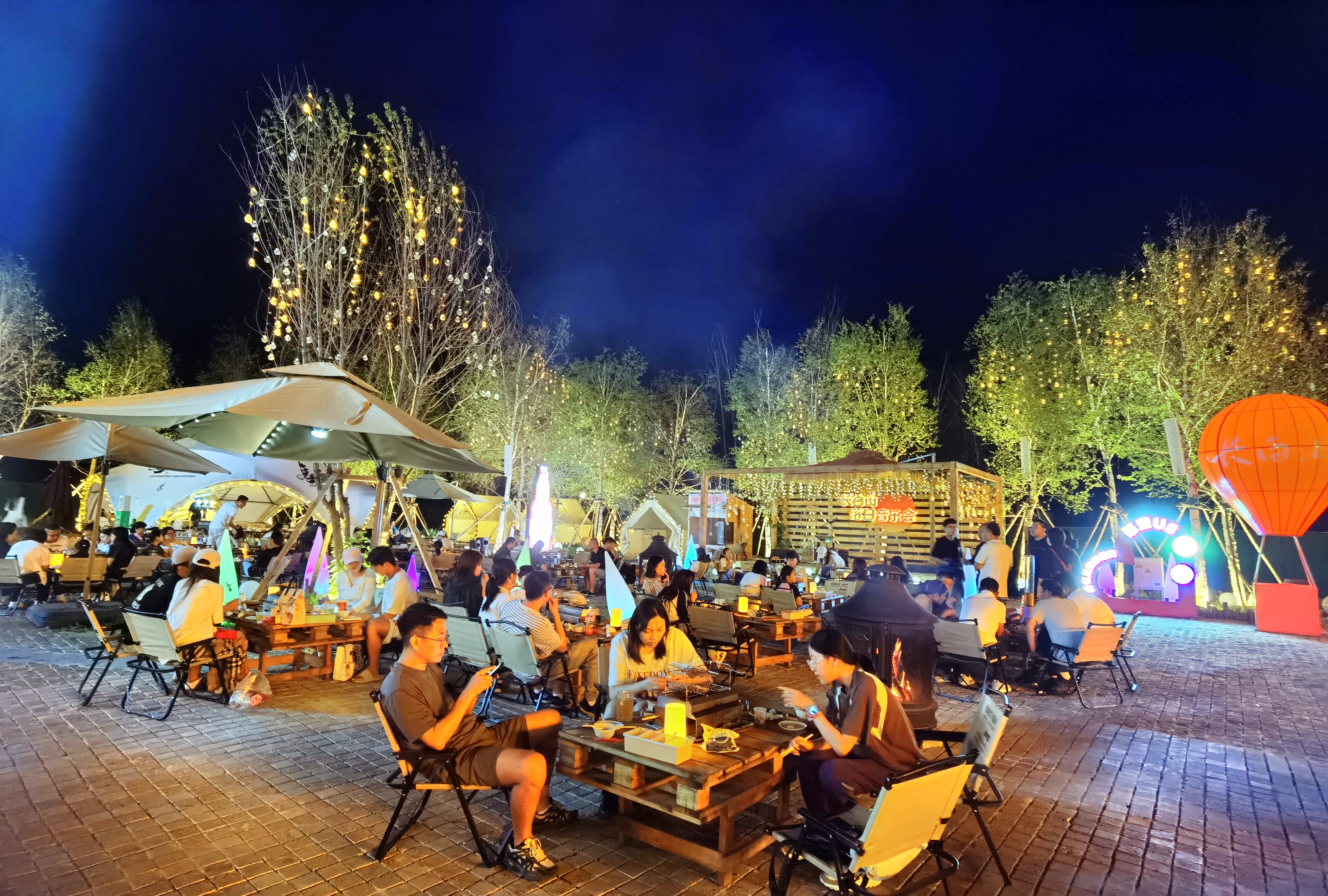 夜幕初降,云頂市集人潮涌動,樂隊彈唱與林間松風交織;雪絨花音樂生活館里,燈光璀璨,民謠悠遠;美人松愛情森林里,漫步其間的情侶與家庭,寫下屬于他們的浪漫記憶。更令人驚艷的,是今夏盛大開街的恩都里(滿語enduri意為“神靈”)休閑度假商旅社區(qū)。