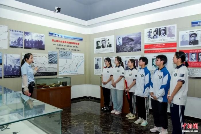 學生在漯河中州抗戰(zhàn)紀念館聆聽抗戰(zhàn)史。程耀旗 攝