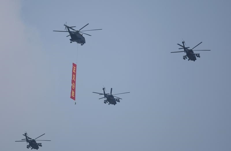 9月3日,紀念中國人民抗日戰(zhàn)爭暨世界反法西斯戰(zhàn)爭勝利80周年大會在北京隆重舉行。這是空中護旗梯隊飛過天安門廣場上空,26架直升機匯成巨大的“80”字樣。
