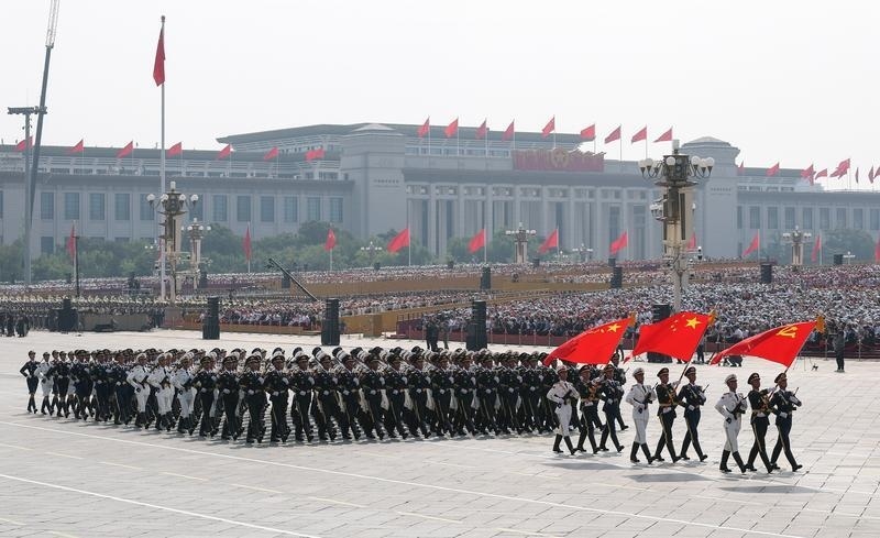 9月3日,紀念中國人民抗日戰(zhàn)爭暨世界反法西斯戰(zhàn)爭勝利80周年大會在北京隆重舉行。這是民兵方隊接受檢閱。