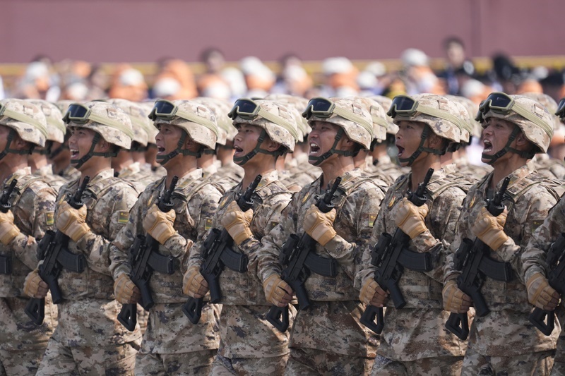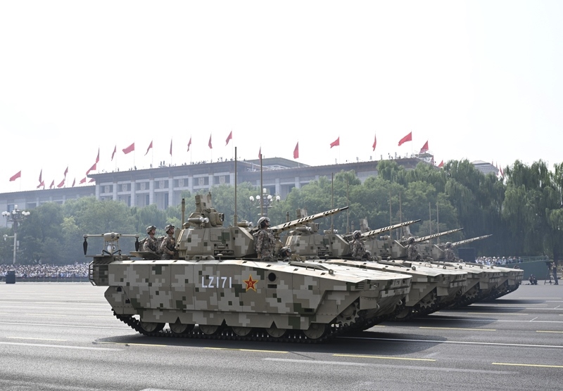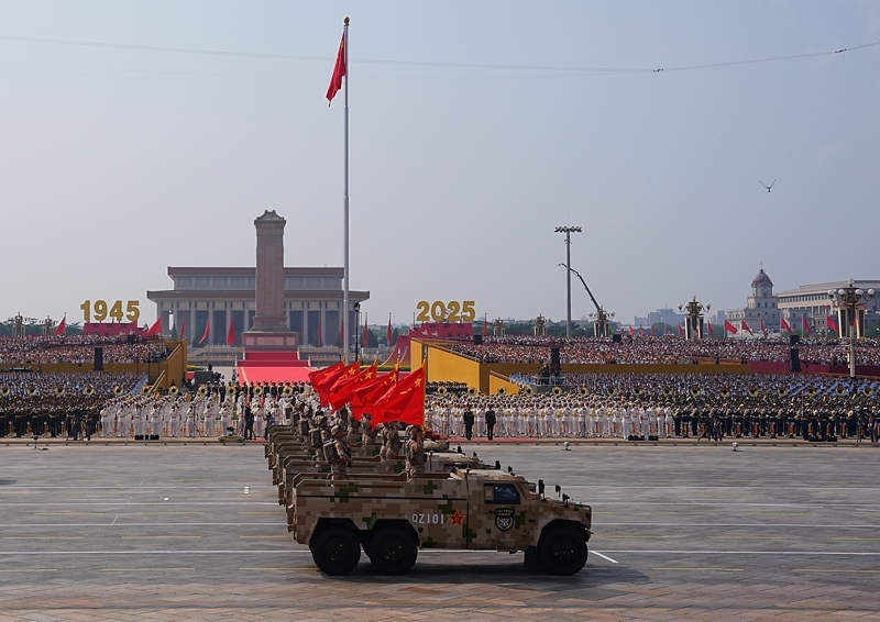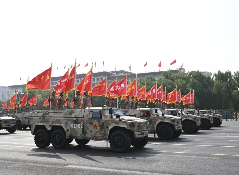 9月3日,紀念中國人民抗日戰(zhàn)爭暨世界反法西斯戰(zhàn)爭勝利80周年大會在北京隆重舉行。這是信息支援部隊方隊接受檢閱。