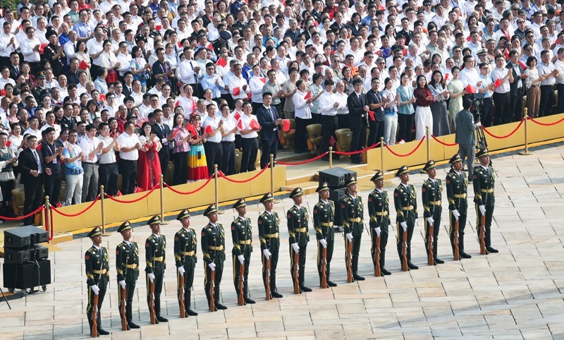 9月3日,紀念中國人民抗日戰(zhàn)爭暨世界反法西斯戰(zhàn)爭勝利80周年大會在北京隆重舉行。這是標(biāo)兵和觀禮嘉賓。