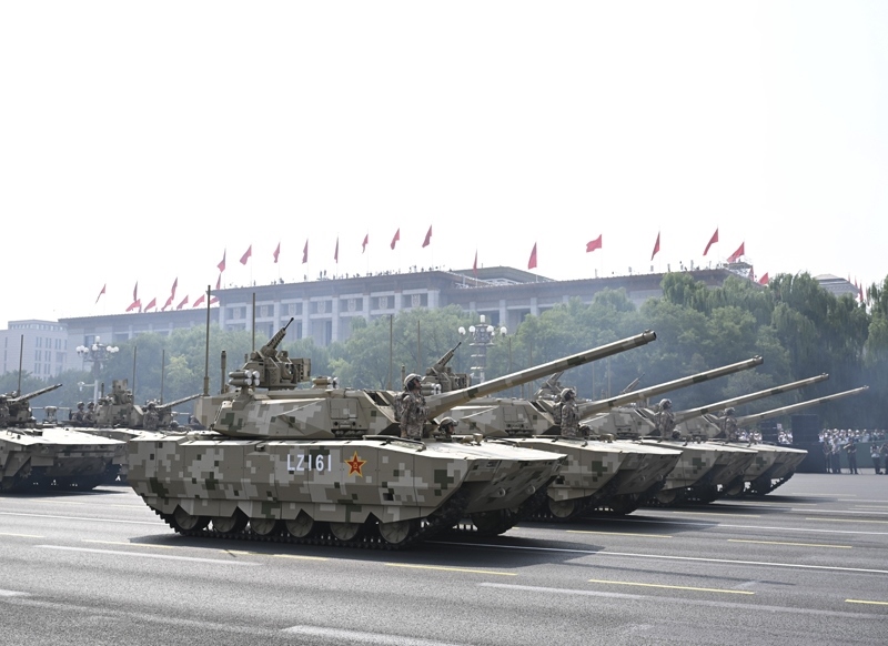 9月3日,紀念中國人民抗日戰(zhàn)爭暨世界反法西斯戰(zhàn)爭勝利80周年大會在北京隆重舉行。這是民兵方隊接受檢閱。