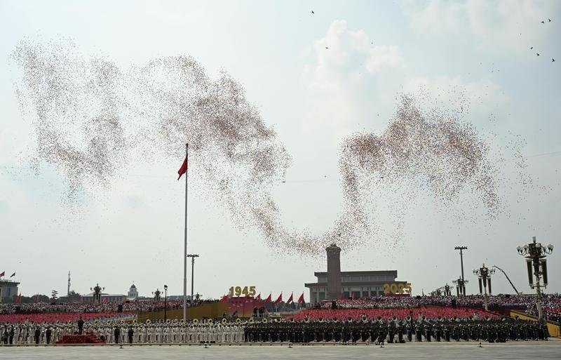 9月3日,紀(jì)念中國(guó)人民抗日戰(zhàn)爭(zhēng)暨世界反法西斯戰(zhàn)爭(zhēng)勝利80周年大會(huì)在北京隆重舉行。這是紀(jì)念大會(huì)現(xiàn)場(chǎng)放飛鴿子。
