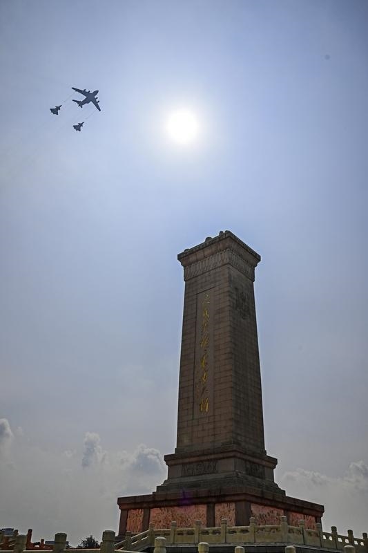 9月3日,紀(jì)念中國(guó)人民抗日戰(zhàn)爭(zhēng)暨世界反法西斯戰(zhàn)爭(zhēng)勝利80周年大會(huì)在北京隆重舉行。這是加受油機(jī)梯隊(duì)接受檢閱。