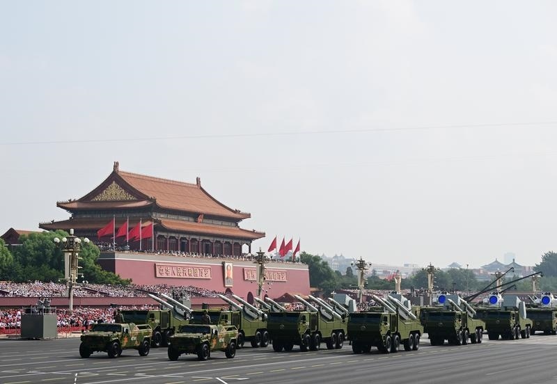 9月3日,紀(jì)念中國(guó)人民抗日戰(zhàn)爭(zhēng)暨世界反法西斯戰(zhàn)爭(zhēng)勝利80周年大會(huì)在北京隆重舉行。這是反艦導(dǎo)彈方隊(duì)接受檢閱。