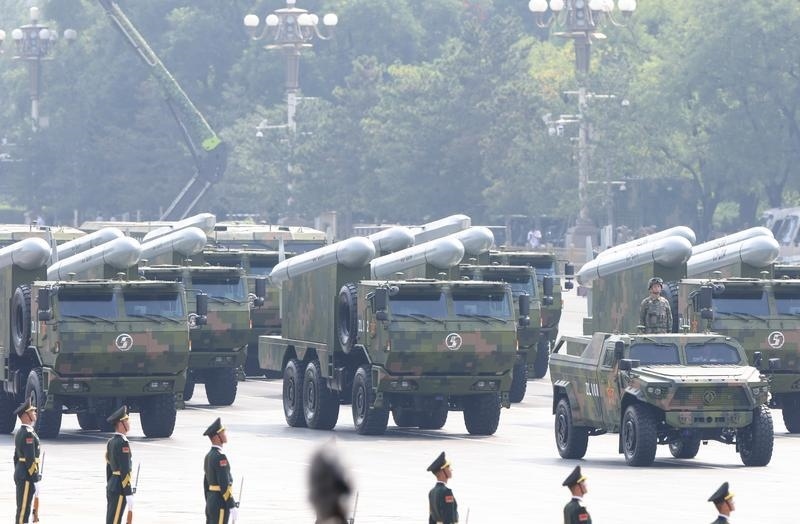 9月3日,紀(jì)念中國(guó)人民抗日戰(zhàn)爭(zhēng)暨世界反法西斯戰(zhàn)爭(zhēng)勝利80周年大會(huì)在北京隆重舉行。這是高超聲速導(dǎo)彈方隊(duì)接受檢閱。