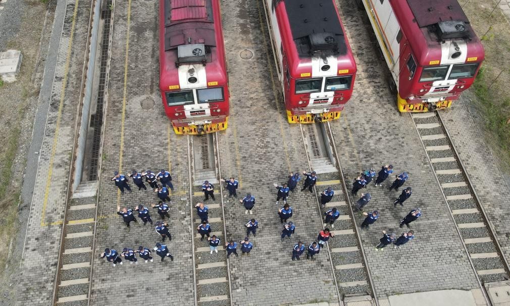 2025年8月19日,在肯尼亞內(nèi)羅畢非洲之星鐵路運營有限責任公司機務運轉(zhuǎn)整備場,中肯兩國鐵路工作者在機車前站列并組成“3000”字樣,以紀念蒙內(nèi)鐵路實現(xiàn)安全運營3000天(無人機照片)。新華社記者 楊光 攝