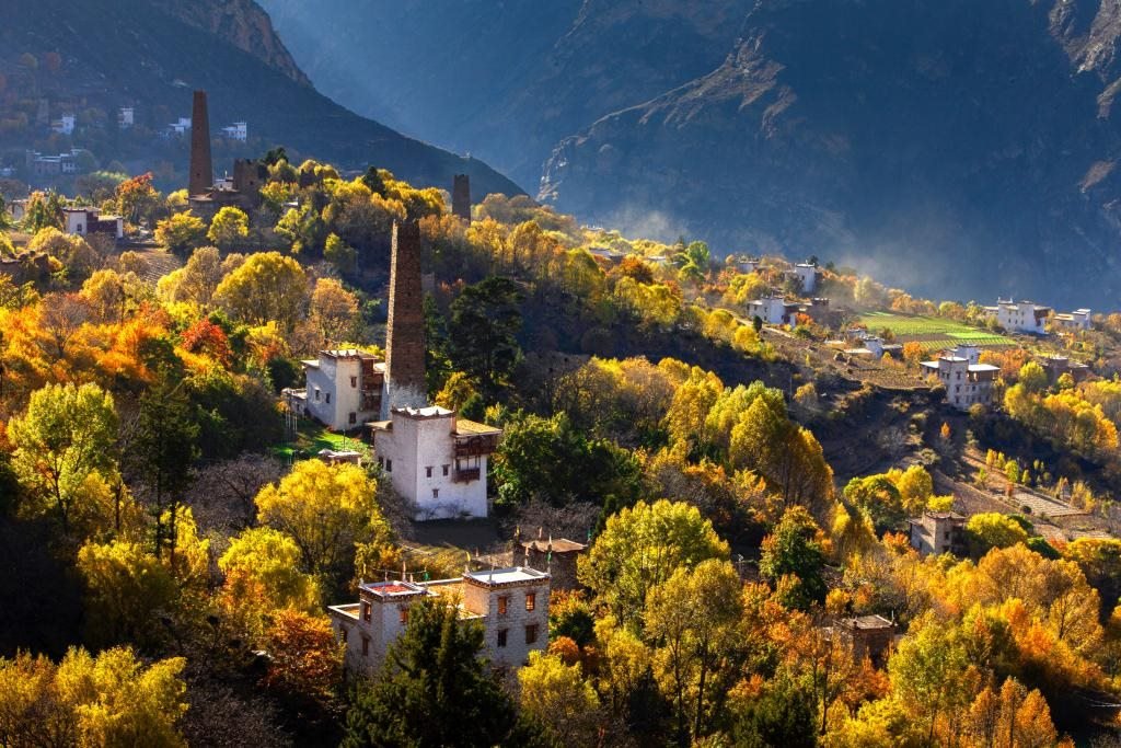 基卡依村地處藏羌彝文化走廊核心地區(qū),位于嘉絨文化、康巴文化生態(tài)保護(hù)實(shí)驗(yàn)區(qū)范圍內(nèi)。保存完好的22座古碉樓與藏式民居,凝結(jié)多民族智慧,成就“云端藏寨”。