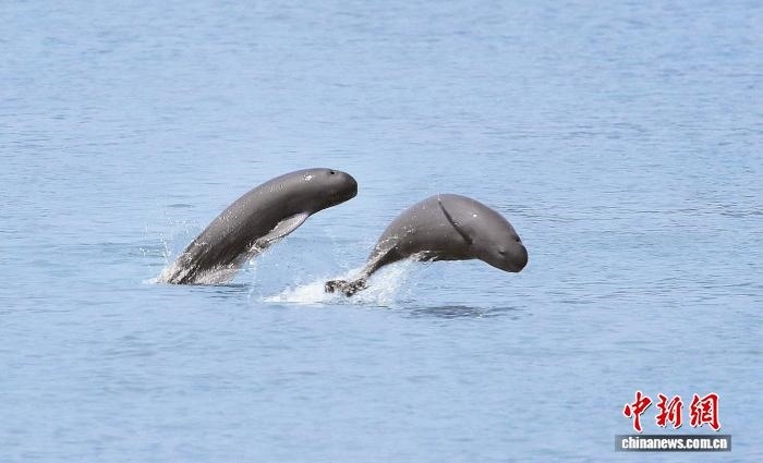 2020年8月,江豚在江西南昌東湖區(qū)揚(yáng)子洲鎮(zhèn)漁業(yè)村的“江豚灣”逐浪嬉戲。(資料圖)余會功 攝